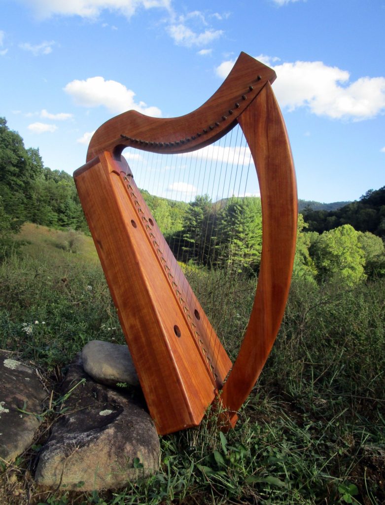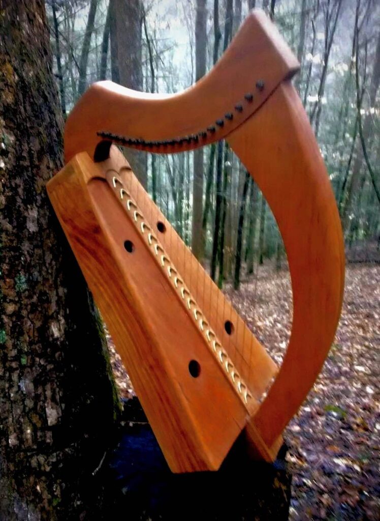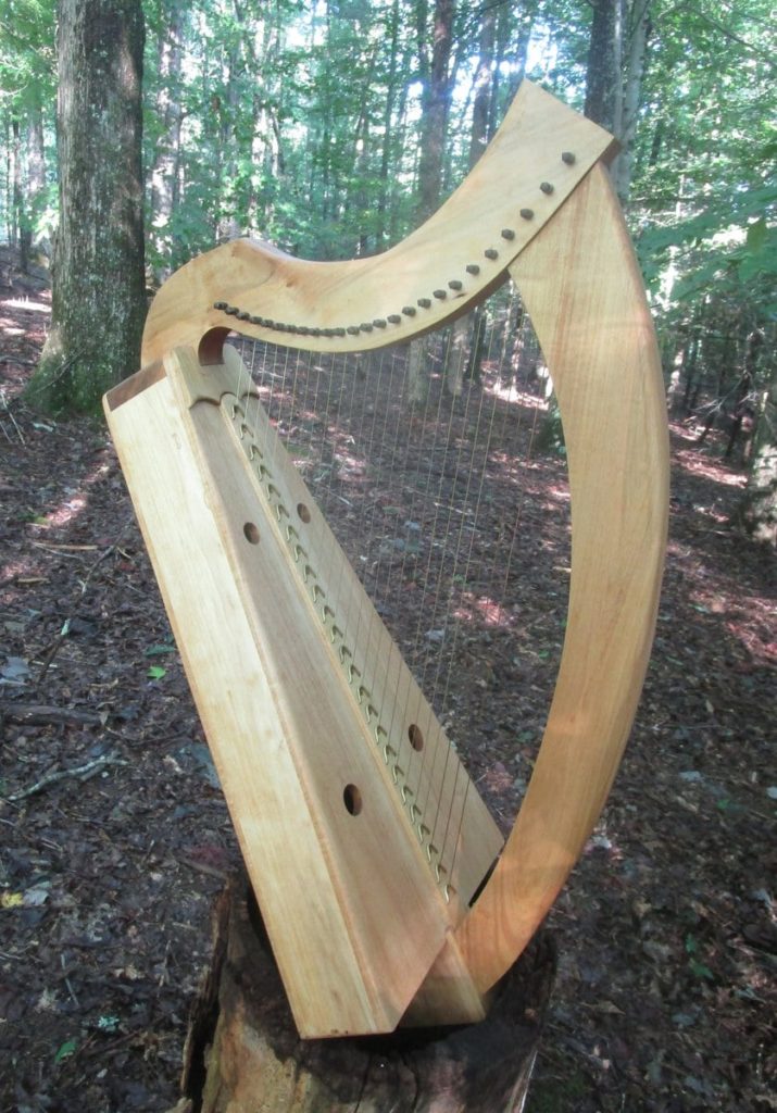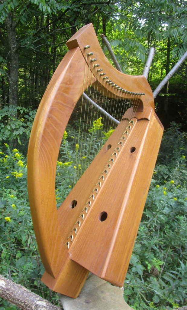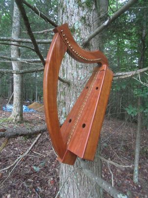 This harp is made along the lines of the ancient wire strung harps only lighter construction of the soundboard, back, and hardware to match the tension of the nylon strings
