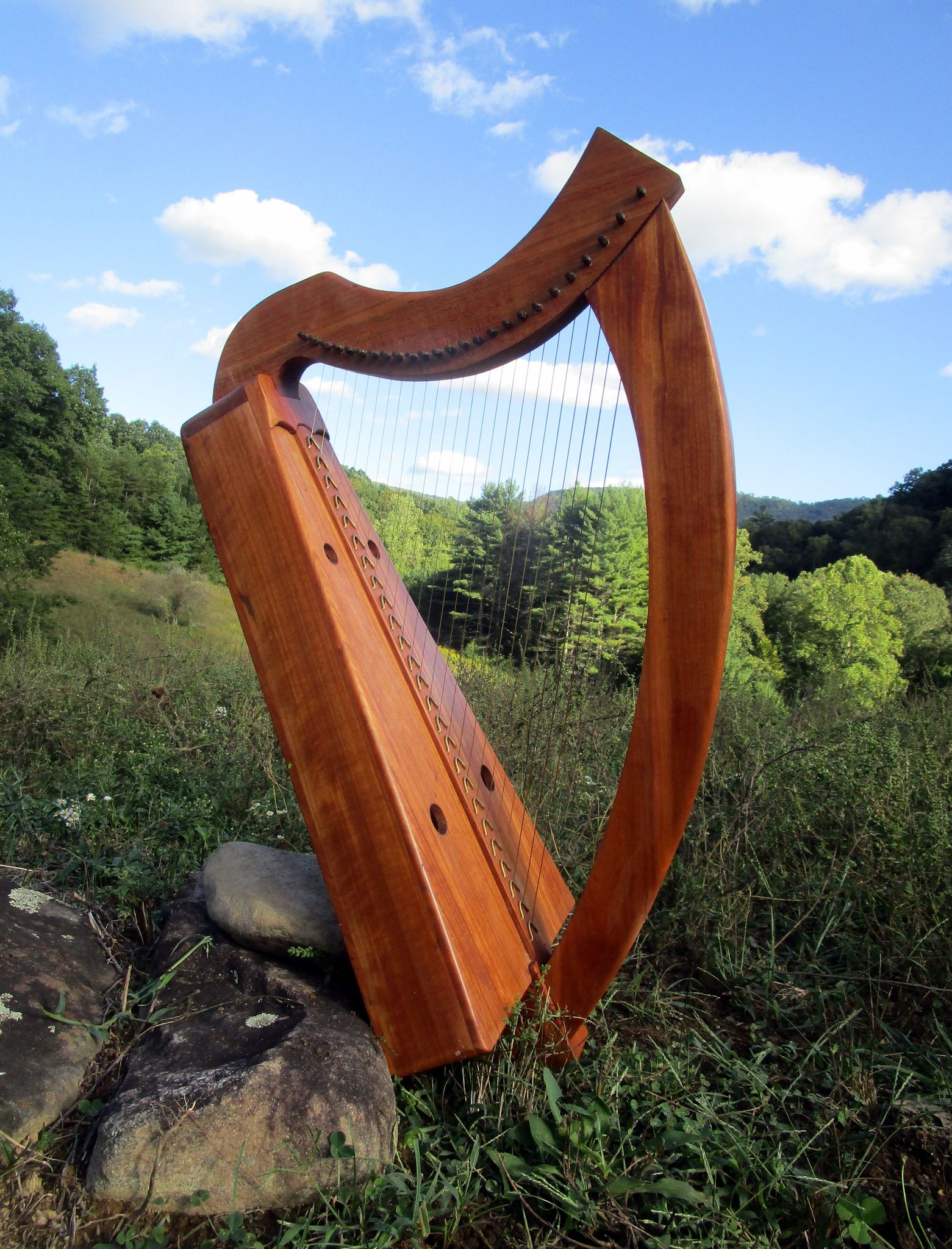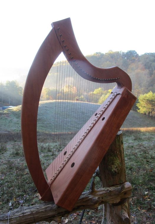 A harp finished on equinox day. The Ancient Enigma Cherry wood, 25 brass strings.