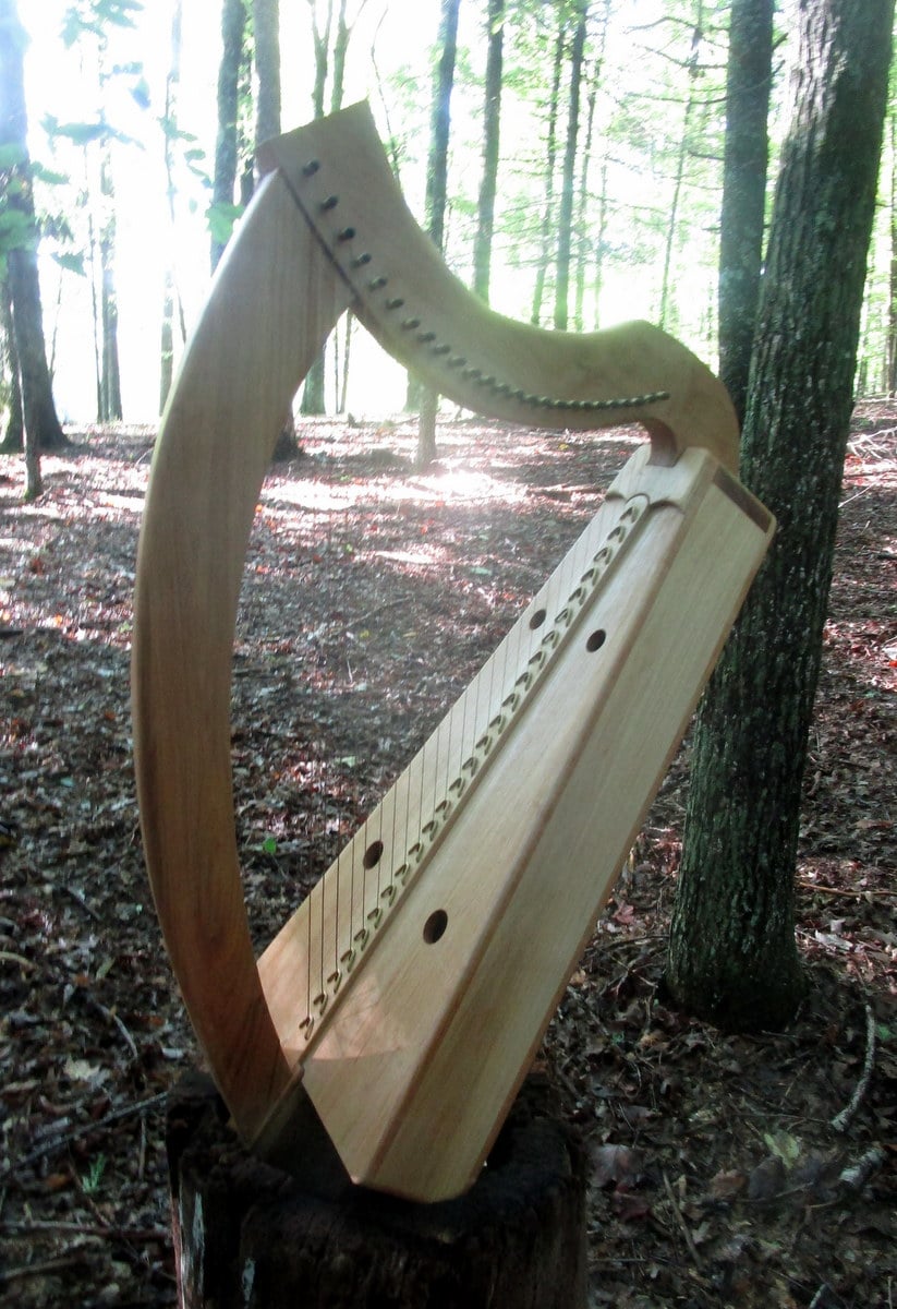 The Ancient Enigma wire strung harp made of sassafras wood. 25 red and yellow brass strings from C below middle C to high F. Sassafras wood is incidental. The scrawny little shrubs whose roots are harvested for sassafras tea will,…